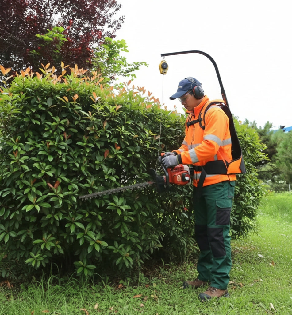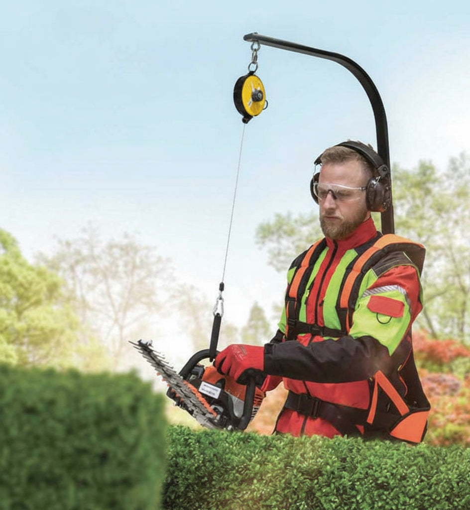 The Elephant Trunk Harness allows you to trim hedges without fatigue or joint and back pain. It reduces the weight of your tools while providing optimal comfort, even during long work sessions.