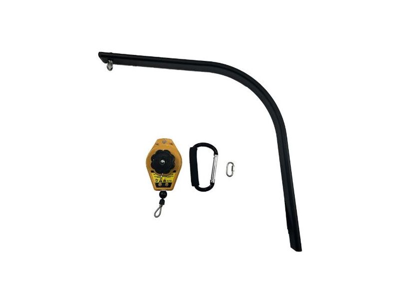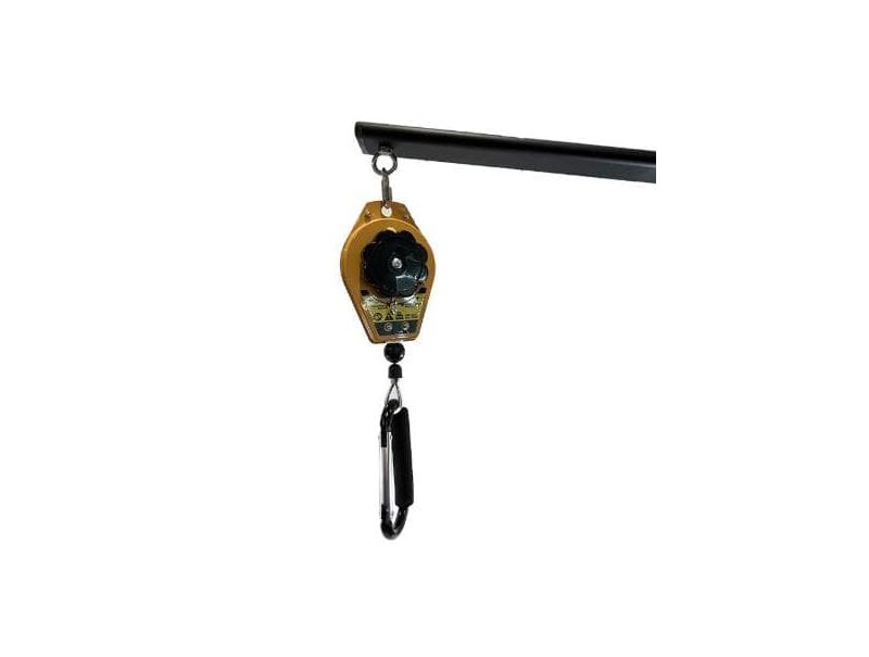 Easily attach your tool to the steel cable using the carabiner. The cable moves smoothly with ball-bearing nylon rollers, automatically following your arm's movements. This allows you to work effortlessly and safely with greater efficiency.